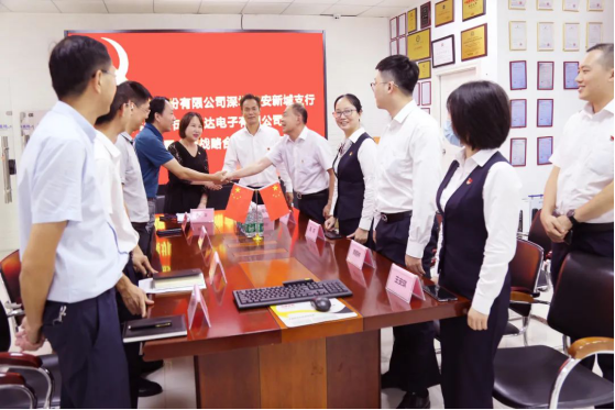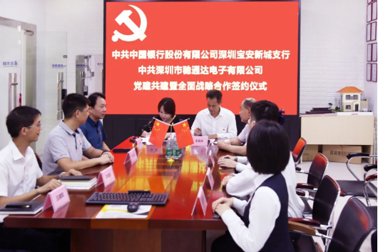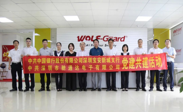 为深入贯彻落实党中央和上级党组织相关精神,充分发挥党组织的战斗堡垒作用和中共党员先锋模范作用,深化银企合作共同提高,2020年8月12日,中国银行股份有限公司深圳新城支行与深圳市驰通达电子有限公司党支部隆重举行党建结对共建暨全面战略合作签约仪式。出席本次签约仪式的中行领导有:宝安管辖支行钟俊副行长,新城支行李克华行长,新城支行陈莉副行长,新城支行黄程林副行长等;出席本次签约仪式的驰通达集团领导有:集团董事长、南山区人大代表万腾驰,集团行政总裁、党支部书记莫蓉,轮值ceo、法人代表熊剑,财务部经理陈晓东等支委成员。中行领导对本次党建共建活动给予高度重视和大力支持,并对受疫情影响导致部分出口业务受阻的企业给予大力的授信额度支持,对驰通达集团日常经营和平稳发展提供了很大的帮助,此行深入基层企业传经送宝更是难能可贵,万腾驰董事长对此表示大加赞赏和感谢!