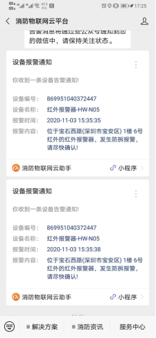 ⑷ 微信公众号:消防物联网云平台